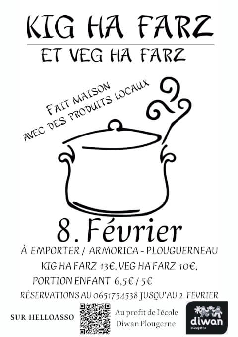 Pour réservez votre kig ha Farz maison, c'est par ici https://www.helloasso.com/associations/kuzul-skoazell-diwan-plougerne/evenements/kig-ha-farz-veg-ha-farz